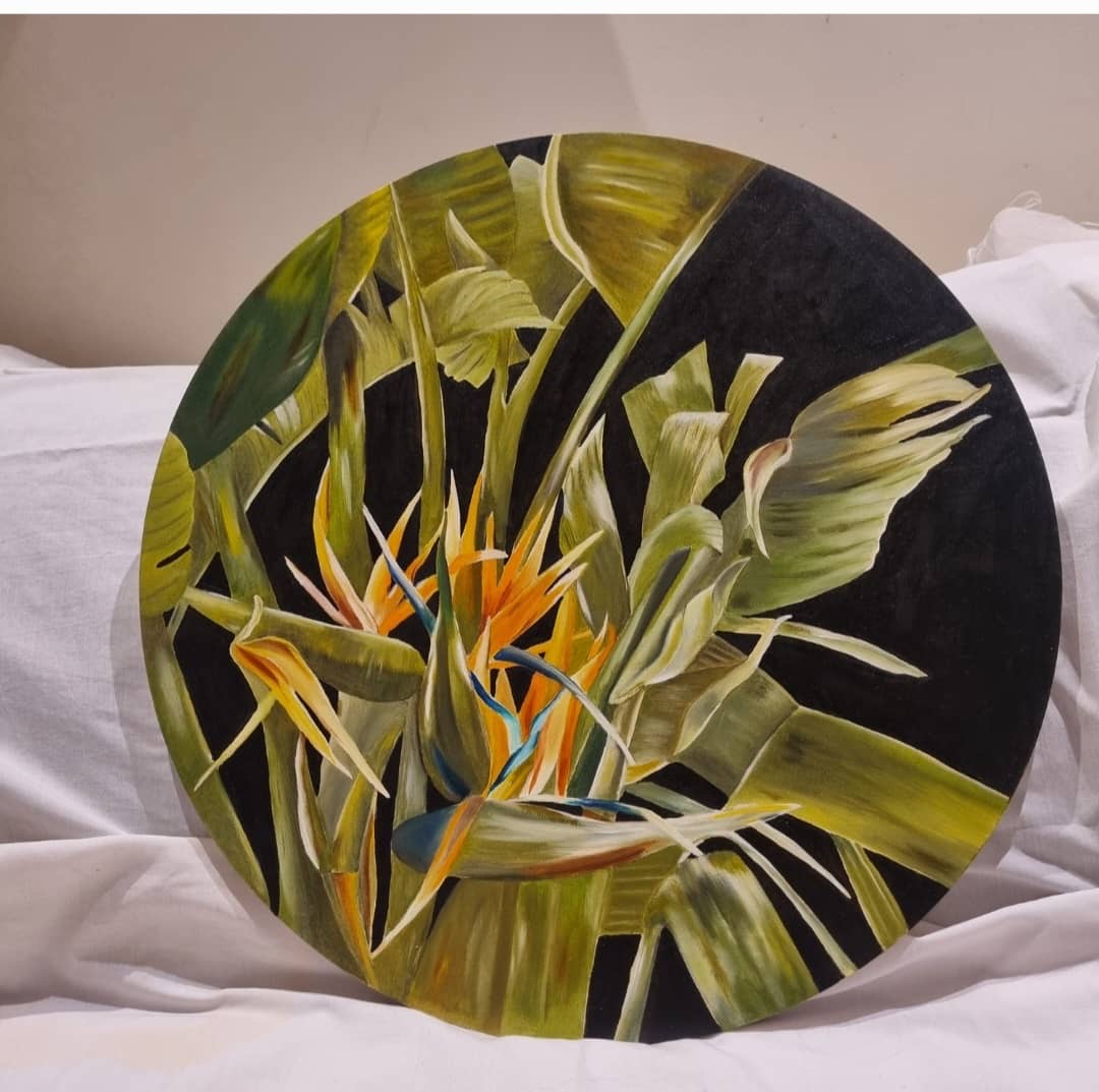 تابلو دایره ای گل تاج خروسی قطر ۵۰
