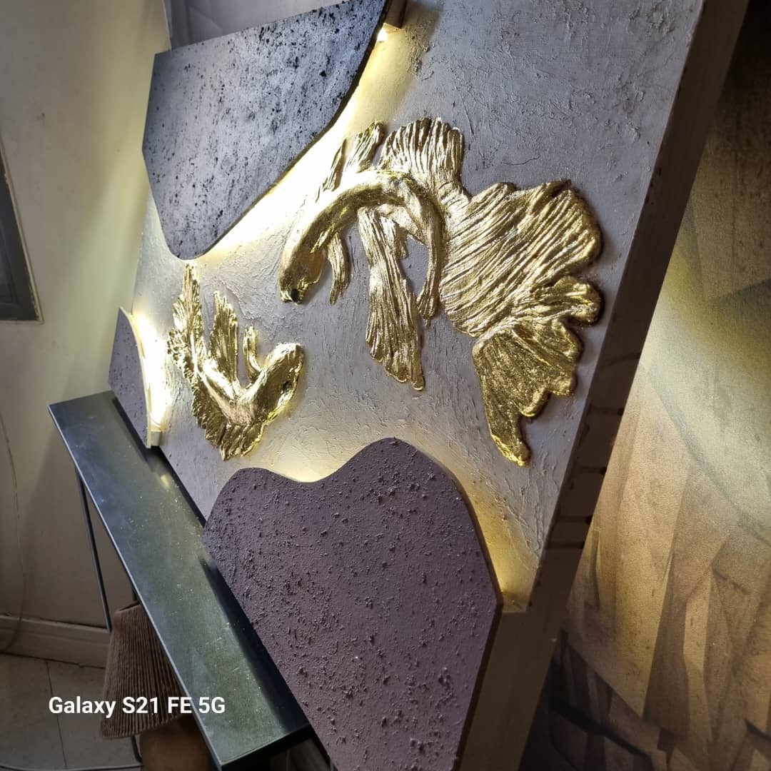 تابلو برجسته ریسه نوری دو ماهی ۱۲۰*۷۰