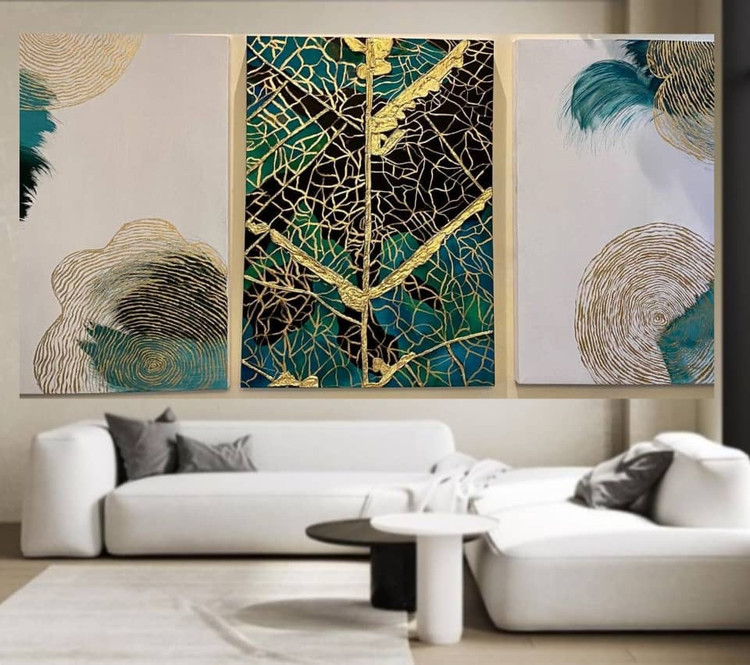 تابلو مدرن سبز شامل سه لت ۵۰ در ۷۰ به صورت برجسته و با طرح مدرن اجرا شده است زیبایی خاصی به محیط شما میبخشد.