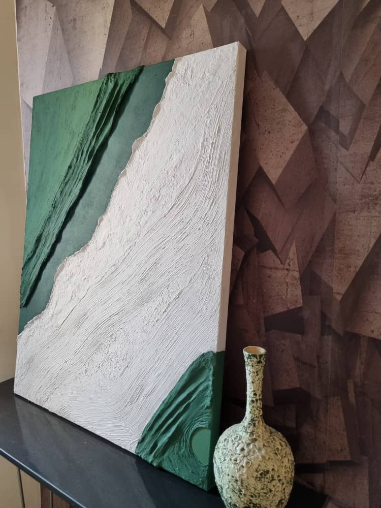 تابلو طرح مدرن مناسب همه فضاها با رنگ سبز به صورت برجسته شیک و مدرن جلوه خاصی بهدمحیط شما میبخشد.