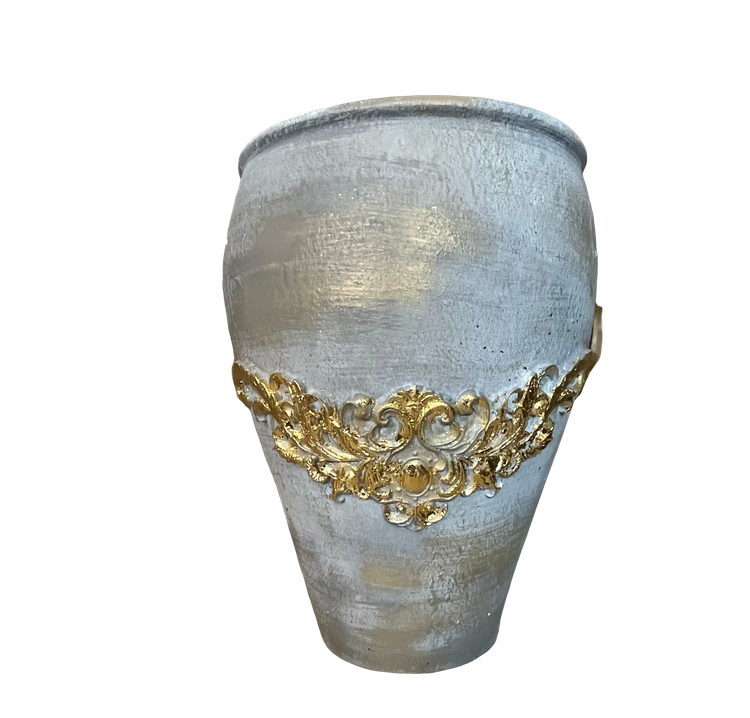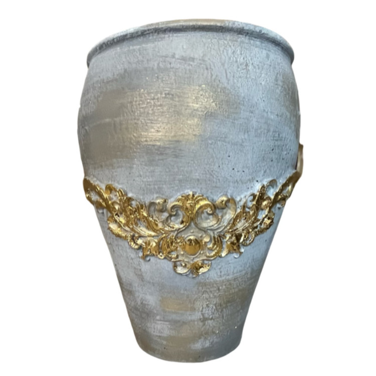 گلدان سفالی طوسی پتینه موتیف دار ۵۰ سانتی