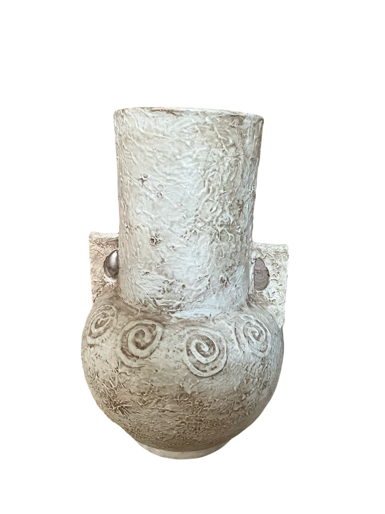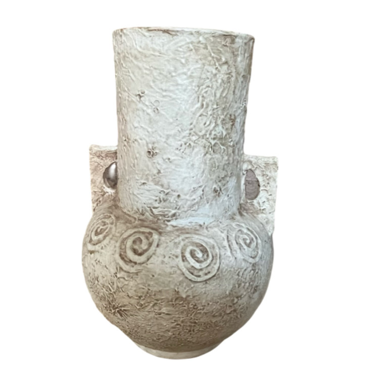 این گلدان سفالی به ارتفاع حدود ۵۰ سانت با دودسته با طرح گدازه پتینه شده است برای قرار دادن گل خشک و گل طبیعی مناسب است وزنی حدود ۴ کیلو دارد.
