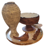 این ست سفالی مخصوص روی جلومبلی شامل یک سینی یک ظرف شکلات یک جاعودی یک گلدان و یک پرنده کوچک میباشد که جلوه خاصی به فضای نشیمن شما میبخشد